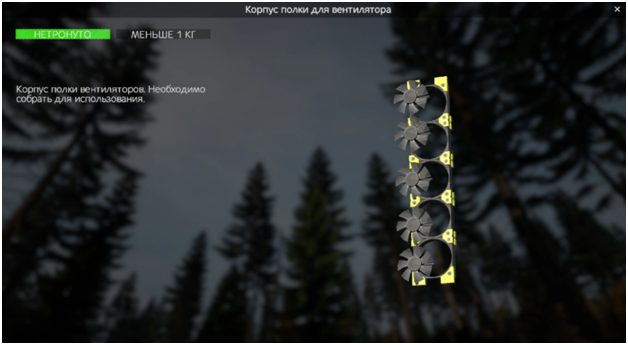 И последним элементом, без которого майнинг ферма не будет работать это собранная полка вентиляторов. Для сборки данной части майнинг фермы вам будет необходимо найти планку и пять вентиляторов к ней.